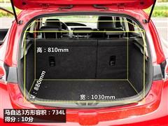 兩廂進口馬自達3的承載能力還是值得認可的,座椅全部正常打開的狀態下后備廂容積734L,可以輕松放入折疊自行車,看上去倒是別有情趣,后排座椅放倒后進深達到了1620mm,但是地板并不完全水平,有一個小小的落差,不過細節處理的比較細膩。