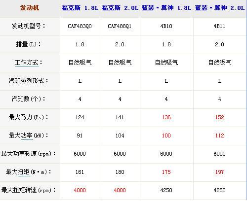 從發動機使用的技術來講,全鋁結構并帶有MIVEC技術的三菱4B系列發動機顯然要更強一些,這點從發動機的最終數據上也有所體現,排量相同的情況下,翼神的發動機在最大功率和扭矩上都要高出福克斯不少,而福克斯只在最大扭矩輸出的轉速上提前一些。