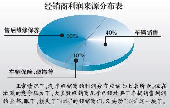 長期與經銷商打交道的亞運村汽車交易市場副總經理顏景輝告訴記者,隨著市場終端的車價逐步走低,大多數經銷商賣車幾無利潤可言,售后服務則成為了惟一的利潤源泉。然而,一旦有經銷商開始為促銷對售后服務進行打折,這將考驗經銷商脆弱的資金鏈,實力稍弱的經銷商將難以生存。