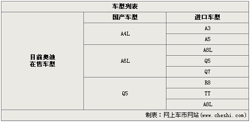 奧迪已有11個系列 幾十款車型在國內(nèi)銷售