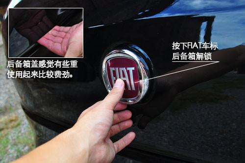 后備箱開啟采用了電磁感應(yīng)按鈕,稍用力按壓FIAT標志即可開啟一個角度,設(shè)計頗為精巧。后備箱的容積并不算大,擱下一個旅行背包已經(jīng)占據(jù)了1/3的體積,后排座椅支持4比6放到,雖然不能完全放平,但是也為后備箱提供了更多空間。總之,博悅的后備箱應(yīng)付日常使用是完全沒有問題的。只是后備箱蓋感覺有些重使用起來稍稍有些費勁。