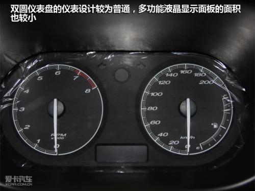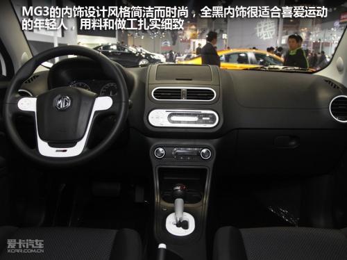 MG3的三幅方向盤設計非常出色,黑白顏色搭配十分年輕,只是采用硬質塑料材質手感欠佳。圓盤形的多功能按鈕與蘋果I-POD音樂播放器十分相似,正是當下年輕人最喜愛的設計風格。相比之下儀表的設計稍顯普通,液晶顯示面板的面積也比較小。