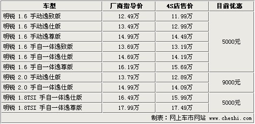據4S店銷售人員介紹:目前明銳全系最高優惠9000元,1.6升及1.8TSI車型優惠減少,尤其1.8TSI車型由原來的8500元降至5000元。2.0升目前優惠9000元,優惠幅度很大,并且2.0升車型有現車,顏色包括銀色、灰色車型。1.6升車型全系現車少,如需預定最短等待1個月,最長需等3個月時間。目前1.6升車型優惠達5000元,1.8TSI的兩款車型優惠5000元。如在店內做裝飾還可打8折,雖然折后裝飾價格仍有些偏高,但產品質量可以保證。