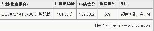 如果提到豪華SUV,大家一定首先想到寶馬X6、奔馳GL、保時捷卡宴以及路虎攬勝等豪華SUV中的“大佬”們,作為國際知名越野極強悍的汽車品牌,雷克薩斯的每一款車型都可謂經典,而雷克薩斯LX570又重新詮釋了豪華SUV的新尺度,與上一代的LX470相比,你卻不得不承認雷克薩斯的LX系列正在以跨越的方式完成自己的進化。近日,近日根據網上車市價格檢測系統顯示,目前雷克薩斯豪華SUV-LX570加價較上段時間的10萬元較少了一半,僅加價5萬進行銷售,而且有現車供應,具體情況請參照下表: