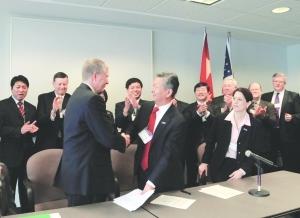 德爾福曾經是全球最大的汽車零部件供應商。完成收購后,京西重工將獲得德爾福位于波蘭、美國、墨西哥、中國、法國等地的8個生產工廠、5個技術中心以及14個技術支持和客戶服務中心。京西重工是專為收購德爾福成立的項目公司,由首鋼總公司控股。 圖為北京京西重工有限公司董事長方建一(前中)在美國底特律與美國德爾福公司負責人弗雷德·貝拉爾(前左)簽字后握手。