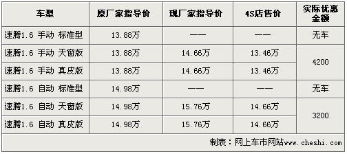 速騰作為一汽大眾新一代“A級”車生產平臺的產物,上市當初憑借全系車型標配ESP電子穩(wěn)定程序而成為統(tǒng)計標桿。隨著國家對1.6及以下排量車型減免一半購置稅政策的出臺,速騰1.6車型更受到消費者的追捧。據網上車市價格監(jiān)測系統(tǒng)顯示,速騰1.6排量全系車型廠家指導價格上調,優(yōu)惠幅度降低。相關車型及價格如下表所示: