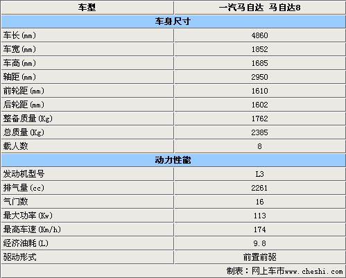 一汽馬自達投產的馬自達8車型將配備2.3L升發動機,采用前置前驅的驅動方式。從上表我們可以看出,馬自達8雖說屬于大型MPV車型,但也完全符合日系車經濟省油的特點,經濟油耗僅為9.8L。馬自達8還有最大的一個優點是,它的承載人數達到了8人,相對于其它MPV車型承載人數7人來說要方便很多。