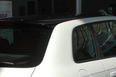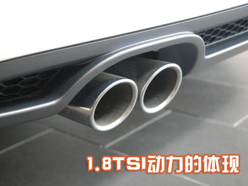 位于裝飾功能大于實際作用的底邊左側,并排放置著兩個排氣口,從一個側面反映了1.8TSI發動機強勁實力。后擋風做了一個略有外傾的弧度處理,上面的橙色縱橫線整齊交錯,并配有一副小巧的雨刷器。