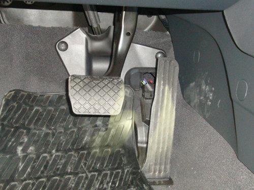 踏板面積比較大,采用膠皮質地,稍稍感覺有些遺憾,如果能采用賽車樣式的就更完美了。使用起來感覺不錯,行程及軟硬程度都比較舒服。