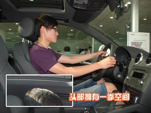 A3算是奧迪家族里面身材最為迷你的一位成員了,三圍參數(shù):4292mm*1765mm*1423mm,軸距為2578mm,絕對的緊湊級身材。視覺從車外直觀看過去,相對低矮的車身有點(diǎn)擔(dān)心空間的問題,測試者178CM。