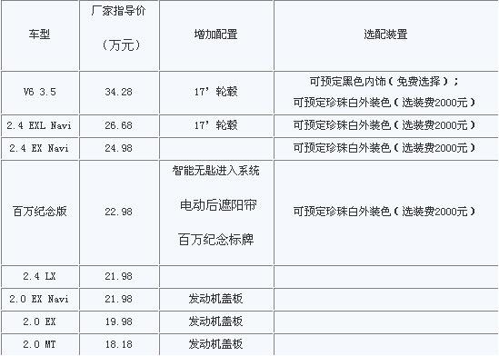2010款雅閣售價18.18-34.28萬 推出百萬紀念版