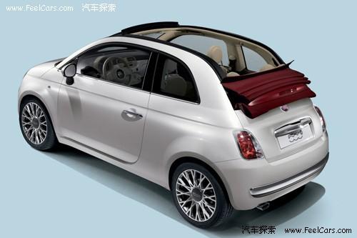 2010款菲亞特500C基于類似五十年代的經典軟頂設計,加入時尚、創新的新元素,車頂與后擋風玻璃部分連成一體。當軟篷折疊時,內置高位剎車燈的屋檐式擾流器會與車頂一同滑落。軟篷提供象牙白、香檳紅、經典黑三種顏色選擇,菲亞特500C還擁有全新設計的多幅式星形輪圈,復古又動感。