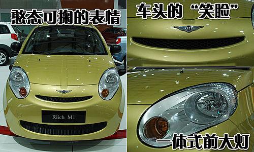 瑞麒M1比奇瑞A1要稍微大一些,定位于A0級兩廂轎車市場,4.28萬元起的售價還是比較有競爭力的。瑞麒M1的車身外形非常具有活力,與奇瑞A1及QQ3一樣,走時尚動感路線,但瑞麒M1的整體外觀看上去卻更加可愛。