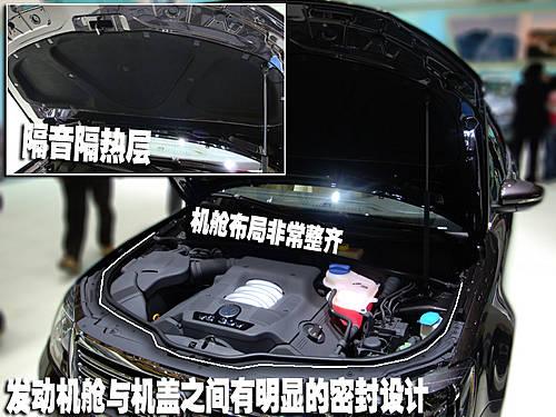 新帕薩特領馭延續了老款車型的優良公益,發動機罩上方帶有面積很大的隔音隔熱層。發動機艙布局非常整齊,在車身與發動機蓋之間還有一條很寬大的密封條整體做工確實給人一種非常嚴謹的感覺。