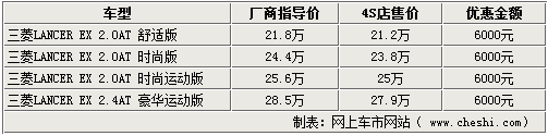 以純進(jìn)口車身份銷售的三菱LANCER EX憑借尚佳的質(zhì)量及性能受到消費(fèi)者喜愛,但因制動(dòng)缺陷導(dǎo)致召回又在消費(fèi)者心中埋下了陰影。據(jù)網(wǎng)上車市網(wǎng)站了解,北京各家進(jìn)口三菱經(jīng)銷商處新車銷售未受影響,全系可給出6000元優(yōu)惠,除舒適車型以外,各款車型均有足夠現(xiàn)車可滿足廣大消費(fèi)者的購車需求。詳情如下: