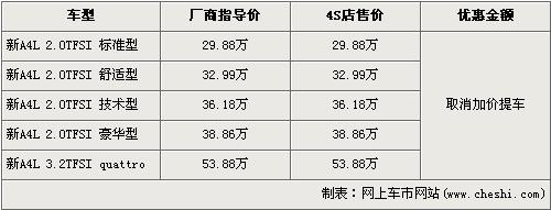 奧迪新A4L取消加價提車 預訂需等1個月