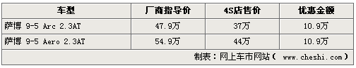 據4S店銷售人員介紹,目前薩博9-5在售車型各店內現車較少,雖然優惠幅度較大但是仍需消費者提前預訂,訂金2萬。繳納訂金約兩周后既可提車,提車時付清全款即可,全系車型均可享受到最高10.9萬的優惠。問及其它而頓優惠活動時,銷售人員表示之前曾經有過優惠達12.9萬的特價車,但僅有一輛。