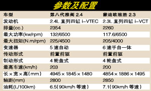 第八代雅閣將于1月6日正式上市,目前已成為整個車市關注的焦點。不論其最終售價如何,就車型來說,新雅閣“史上最強雅閣”的口號早已映射出其所具備的運動特質。而剛于去年11月8日上市的蒙迪歐致勝,其運動特征更為明顯,與第八代雅閣的上市時間僅僅兩個月之差。同為中高級車市的重量級新車,一樣遵循“運動商務”的設計理念,把它們放在一起進行對比就顯得順理成章。