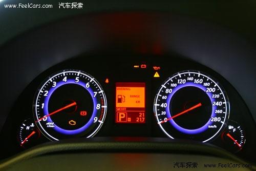 與強大發(fā)動機配合的,是一款7速手自一體變速箱。不但可以通過變速桿控制換檔的,還可以通過方向盤上的換檔撥片控制。粗壯的三輻射多功能方向盤上的按鈕可以控制導航、音響和電話等功能。顏色鮮艷的儀表盤提供了不錯的視覺效果,而導航系統(tǒng)和空調(diào)出風口的設(shè)計與目前國產(chǎn)的天籟公爵十分相似。