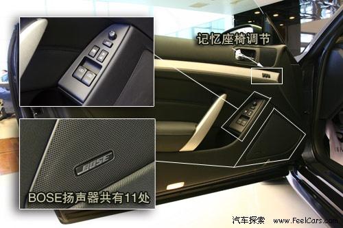 G37 Coupe的座椅顯示出英菲尼迪豪華品牌的定位,打孔通風真皮座椅調節功能豐富。駕駛席座椅可以進行14向電動調節,副駕駛席為8向。BOSS音響在國內早已是家喻戶曉,在英菲尼迪G37 Coupe上共有11個BOSS揚聲器,可以播放6碟CD機或是由娛樂接的信號。