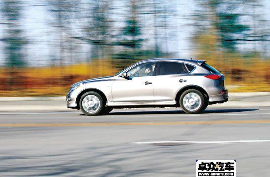 在操控能力方面,EX35修長的車頭為前中置發動機設計提供了巨大的便利,也使前后軸的負載更加平均,雖然不像寶馬50:50那樣完美,但是也體現出了EX35在運動及操控性方面的不懈追求。前雙橫臂式后多連桿式懸架配置使EX35高速表現相當平穩。低速通過溝坎時車身跳動也比較輕柔,較低的重心也使過彎時懸架的側傾保持在較小的幅度內,而且EX35的智能四驅系統在確保車身穩定的同時絲毫不會降低操控的靈敏度。