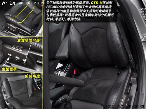 再看看特點,除了內飾透出的動感元素外,材料的選用在CTS-V上也十分講究!這里我只說一點,就是內飾細節中很多都采用了類似翻毛的皮革。如在方向盤握把上;變速器擋桿兒上以及座椅與身體貼合的部位均使用了這種面料,通過靜態與駕駛的體驗,翻毛皮不只表現出極好的手感,在摩擦力與防滑作用上也特別到位,因此個人也是非常喜歡!