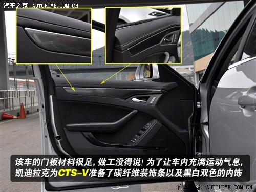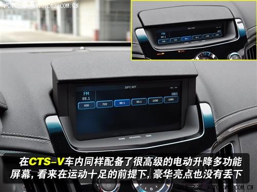 在CTS-V車內,我看到了不少運動型或性能車上所具有或沒有的特點,說起來有些繞口,首先談談共性。一般情況下,運動型車內都會用深色為基調的內飾并搭配碳纖維面板,有些車上還會用白色縫合線與深色高等皮質搭配,這樣一來,不僅樣式好看,它所透出的動感也是無法掩蓋的。