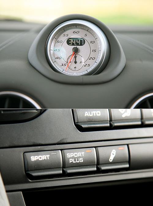 而中控臺上方的指針式馬表,正是在911小改款上所試用過的Sport Chorono Package Plus系統,這次保時捷亦提供Boxster的車主選購。同樣的,使用者只要按下中抬臺上的Sport Plus按鍵,便可以在計算機的協助下,享受6000轉無失誤起步以及性能化的換檔控制。