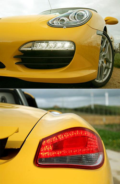 Boxster這次的小改款工程,與2008年911小改款工程極為相似,LED燈飾的改變,是這次外觀上最大的變化。前保桿下方的進氣口,在上緣處加入了一排白光LED的日間行駛燈,讓整個車頭的風格,與911呈現家族的一致性。而后方燈組的外圍,同樣加上了一組高亮度LED,讓剎車制動的警示效果更佳,在夜間的辨識度亦大幅的提升。