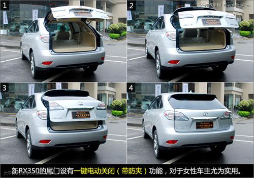 新RX350的尾門設有一鍵電動關閉(帶防夾)功能,對于身材嬌小的女性車主來說尤為實用。值得一提的是,這個價位的SUV中,配有該項功能的車型并不算多,像奔馳ML350等就沒有安裝該系統。