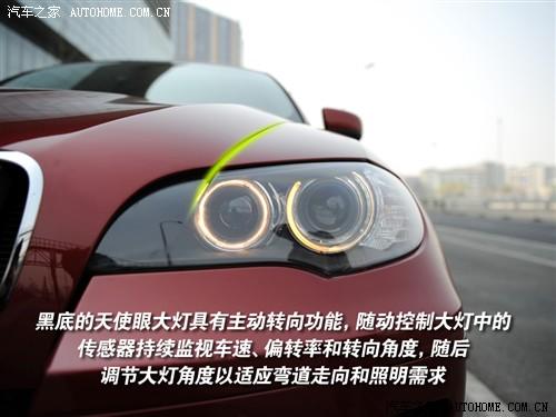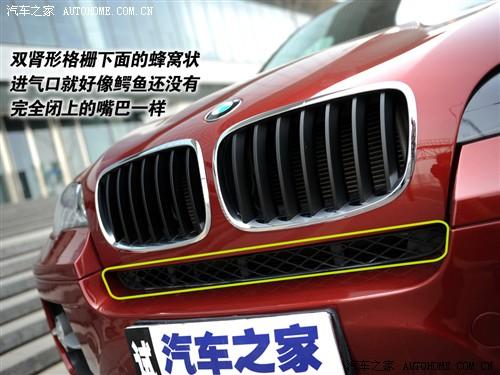X6在細節的設計上也沒有偷懶,除了前臉的雙腎形格柵很難創新以外,其他很多細節還是很有特色的。格柵下面的蜂窩狀進氣口和X5的比較接近,就像鱷魚在咬到獵物之后,即將合上的大嘴一樣。大燈則是非常聰明的主動轉向頭燈,天使眼也絕對不會缺席,黑色的底色很配X6的設計風格。