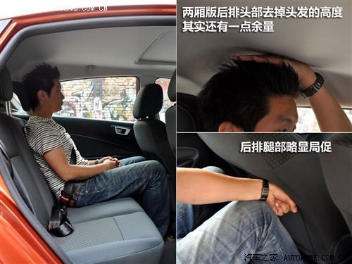 后排的乘坐空間相對來說就比較有限了,此時(shí)按照同一體驗(yàn)人正常駕姿調(diào)整好前排座椅,后排腿部有一拳左右的余量。而后排頭部空間原本還有一點(diǎn)富裕,但是被體驗(yàn)人豎立的頭發(fā)占了大半,于是圖片上我們只能看到非常小的余量了。以身高衡量的話,185cm的人坐在后排也可以,但只能正襟危坐了,除非前面換個(gè)瘦小型的司機(jī),或者女司機(jī)。