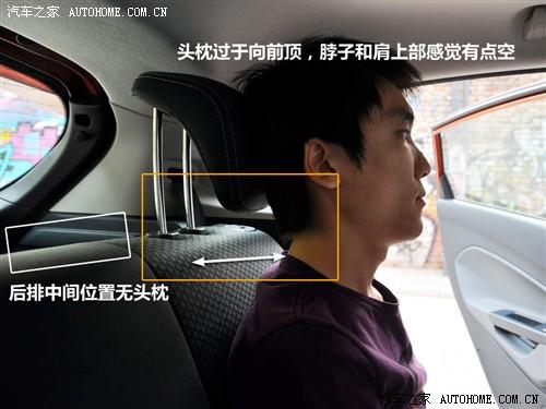 前排就是普通的手動六向調(diào)節(jié)方式,沒有什么可以特別說明的。而后排三人座只提供了兩個(gè)頭枕,頭枕可以上下調(diào)節(jié),但是過于向前探出,就會頂著人的后腦勺,使脖子部位懸空,感覺不是很舒適。而且,沒有車頂拉手給乘客用來維持身體平衡讓人很不習(xí)慣。