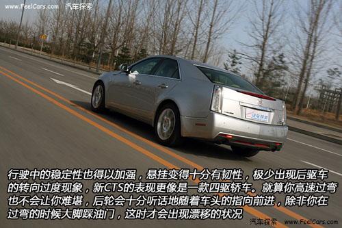行駛中的穩定性也得以加強,懸掛變的十分有韌性,極少出現后驅車的轉向過度現象,新CTS的表現更像是一款四驅轎車。就算你高速過彎也不會讓你難堪,后輪會十分聽話地隨著車頭的指向前進。除非你在過彎的時候大腳踩油門,這時才會出現漂移的狀況。