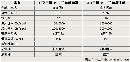 東風(fēng)雪鐵龍世嘉三廂和標(biāo)致307動(dòng)力系統(tǒng)相同,都是2.0升直列4缸發(fā)動(dòng)機(jī)并且同時(shí)運(yùn)用了電子節(jié)氣門(mén)技術(shù),該技術(shù)可以能根據(jù)駕駛員的需求愿望以及整車(chē)各種行駛狀況確定節(jié)氣門(mén)的最佳開(kāi)度,保證車(chē)輛最佳的動(dòng)力性和燃油經(jīng)濟(jì)性。兩款車(chē)型的動(dòng)力輸出完全一樣,但是由于各自的整備質(zhì)量和設(shè)計(jì)不同,所以在最高時(shí)速和油耗上有所區(qū)別。兩款車(chē)型的變速系統(tǒng)均是5速手動(dòng)變速箱。制動(dòng)方式兩款車(chē)型均為前通風(fēng)盤(pán)式后實(shí)心盤(pán)式的剎車(chē)。