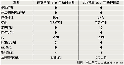 由于兩款車(chē)型都是2.0的低配車(chē)型,所以在配置方面沒(méi)有太突出的地方。電動(dòng)門(mén)窗、外后鏡電動(dòng)調(diào)節(jié)、遙控鑰匙和后排座椅放倒功能都是它們的標(biāo)配。但是兩款車(chē)型還是各自都有各自的特點(diǎn),雪鐵龍世嘉三廂配備了定速巡航,可以大大減少駕駛員長(zhǎng)途駕駛的疲勞。標(biāo)致307則配備了具有冷藏儲(chǔ)物功能的手套箱。這些配置在同級(jí)別同價(jià)位的車(chē)型中都是很少見(jiàn)到的。