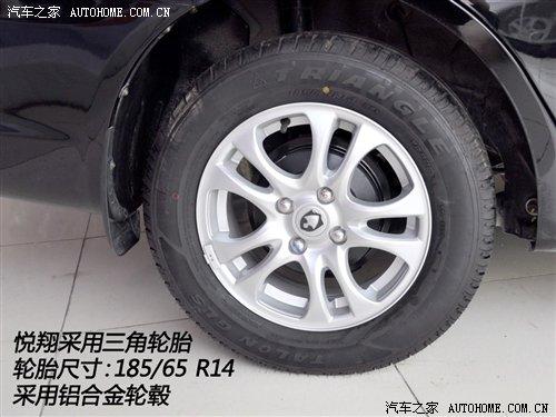 悅翔共有四種配置,裝備了相同的185/65 R14輪胎,相對來說14寸輪轂過于小氣,影響了這款車的外觀。其中基本型和舒適性配備鋼輪轂,豪華型和尊貴型配備鋁合金輪轂。備胎都是175/65 R14,鋼制輪轂。因此悅翔是非全尺寸備胎。
