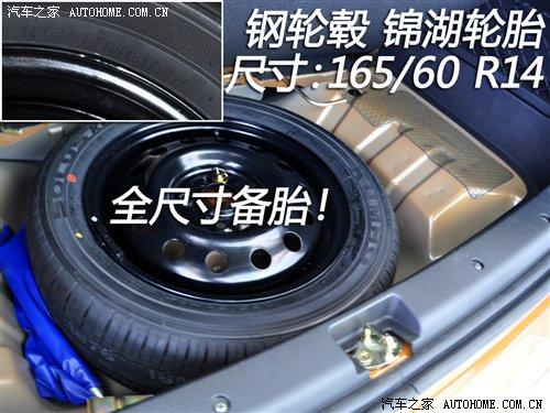 奔奔全系采用165/60 R14輪胎,1.0 MT和1.3手動舒適型的輪轂為鋼輪轂,其余車型都裝備鋁合金輪轂。備胎尺寸和輪胎尺寸相同,因此可以說奔奔全系配備全尺寸備胎。