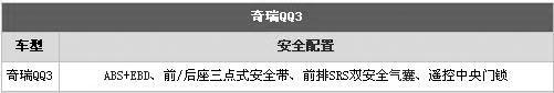 作為老資格的QQ3在安全方面沒有讓我們失望,從表中我們看到QQ3配備ABS+EBD,這在微型車中也是非常出眾的配置。靈活機動,價格低廉,油耗較低是QQ3最大的優點。由于QQ3只是一款微型車,內部空間不是很寬敞,并非全部符合國內消費者主流家庭轎車的選擇標準,不過在配置方面,QQ3相比以前有很大提高,其舒適型車配備了動力轉向、電動門窗、電動后視鏡、真皮座椅、CD和中央門鎖等。