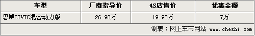 據(jù)4S店銷售人員介紹,目前思域混合動(dòng)力版車型現(xiàn)車并不多,消費(fèi)者購買現(xiàn)車可以直接優(yōu)惠現(xiàn)金5萬元,如果選擇訂車的話則最高可以優(yōu)惠到7萬元,優(yōu)惠后售價(jià)僅為19.98萬元。訂車的話訂金為2000元,需要等待約一個(gè)月時(shí)間。