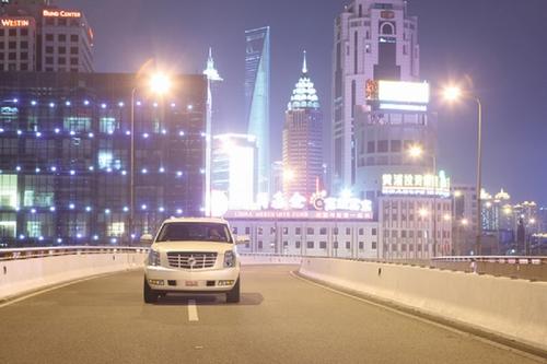 我正在駕駛一臺巨大的凱迪拉克,它的長度突破了5米,而高度和寬度都突破了2米,這讓正在我身旁的帕薩特看上去明顯比平時小了一號。帶有珠光效果的白色漆面和布滿周身的鍍鉻裝飾顯然是為了引起更好的關注度而特意安排的。這種外部裝飾效果很符合我對傳統凱迪拉克的定義,巨型而且總是閃閃發光,但這樣的裝備并不能將我現在駕駛的這臺車和一臺普通的凱雷德區別開來。