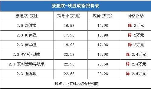 4月份蒙迪歐-致勝的銷量不到4000輛,仍有較大的上升空間。為了提升銷量,經銷商不斷的加大其優(yōu)惠力度。我們從北京地區(qū)的經銷商處了解到,蒙迪歐-致勝全系車型的優(yōu)惠均在2萬元以上,其平均價格比一個月前下降了1000元,目前致勝最低配車型再次跌破15萬元區(qū)間,僅售14.98萬元,性價比再次得到提升。