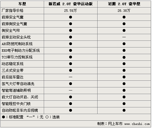 新君威2.0T和邁騰2.0T作為個性中級車,其在安全性能方面可謂是下足了功夫,前排安全氣囊、側(cè)安全氣囊及電子穩(wěn)定程序等均成為三款車的標(biāo)準(zhǔn)配置。而新君威2.0T配備的主動式頭枕,較邁騰2.0T提高了主動安全性能。此外,邁騰2.0T配備的前后駐車?yán)走_(dá),較邁騰2.0T的倒車?yán)走_(dá)更加人性化。