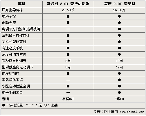 在豪華配置方面,新君威2.0T和邁騰2.0T更是不遺余力的配備各自高端配置,電動天窗、定速巡航、電動座椅、座椅電加熱以及分區(qū)自動空調(diào)均稱為兩款車的標(biāo)準(zhǔn)配置。但新君威2.0T配備的電磁隨速轉(zhuǎn)向系統(tǒng),讓其整體的操控性略高于邁騰2.0T。此外,邁騰2.0T配備的電子手剎、12向電動真皮坐椅和電動折疊后視鏡等配置,似乎要比新君威2.0T更加時尚。