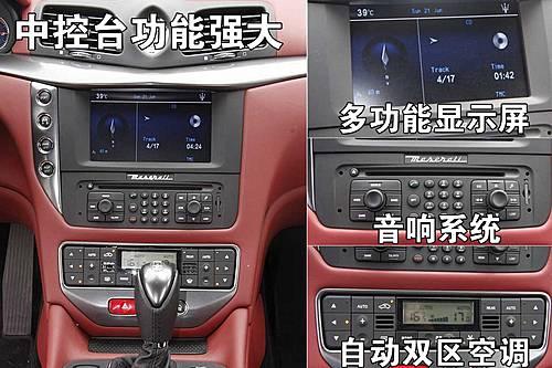 瑪莎拉蒂GranTurismo的中控臺功能很豐富,DVD中央顯示屏、bose音響系統、自動雙區空調,為您締造一個舒適乘坐空間。