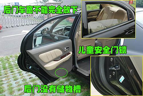 名馭后排車門并沒有配備和前門一樣的儲(chǔ)物槽,不太方便,同時(shí)配備了兒童安全門鎖。車窗在完全放下時(shí),后門玻璃并不能完全放下,這樣充分考慮到了后排乘客的安全。