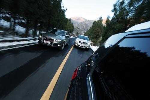 所有4款車都配備了3.0升以上的V6發(fā)動機,這意味著所有4位選手理論上都擁有不錯的動力表現(xiàn)。其中XC60還配備了一套雙渦輪增壓裝置。所以沃爾沃在力量方面占有先天優(yōu)勢。雖然280馬力最大功率并沒有比奔馳和奧迪領(lǐng)先多少(Q5為270馬力,GLK則是272馬力),但從1500轉(zhuǎn)一直能維持到4800轉(zhuǎn)的400牛·米最大扭矩?zé)o疑讓它的中段加速力顯得尤其突出。寬泛的扭矩輸出帶還掩蓋了6速自動變速器反應(yīng)欠敏捷的缺陷。但即使如此,變速器在普通模式下完成降檔提速的頓挫依然有點兒明顯。所以在城市高速路上跟著SRX一路殺向拍攝地點時,我一直都保持在手動模式。將速度維持在60-120之間,我需要做的只是在響應(yīng)敏捷的4檔和5檔之間來回切換,巨大的低轉(zhuǎn)扭矩讓提速變得很容易,所以在那些按常理需要使用3檔的地方也可以維持在4檔,稍微多給一點兒油,問題就解決了。
