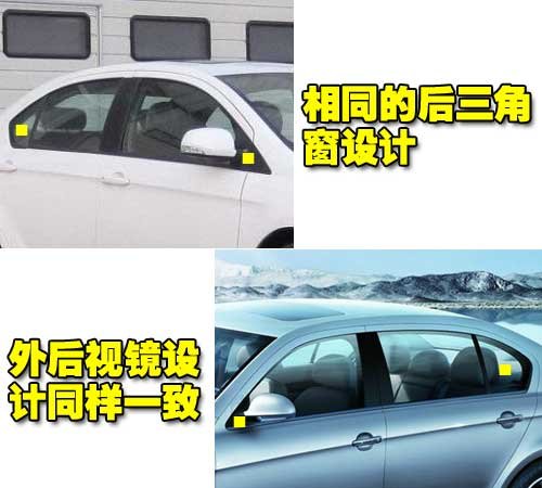 在側面細節上,CH041與朗逸的前后窗的設計也是相同的,尤其是后三角窗的設計,都是采用神似寶馬的回折線設計,外后視鏡的在位置和設計上也是相似的,并且都是目前比較主流的集成轉向燈設計。