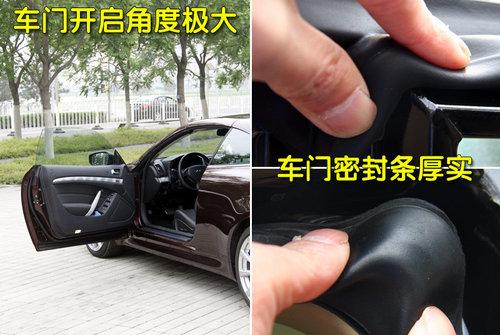 英菲尼迪G37敞篷版外門拉手與車身同色,起到了全車融會貫通的作用,大大增強了外部視覺感。外門拉手附近做工講究,車門電磁式開啟力度適中,沒有任何松垮的感覺。