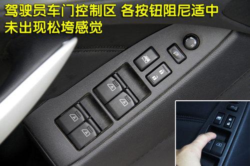 駕駛員一側的門窗控制區(qū)域,各按鈕阻尼適中,沒有任何松垮感覺。車窗提供了一鍵式門窗升降,車門中控鎖位置便于駕駛者操作。
